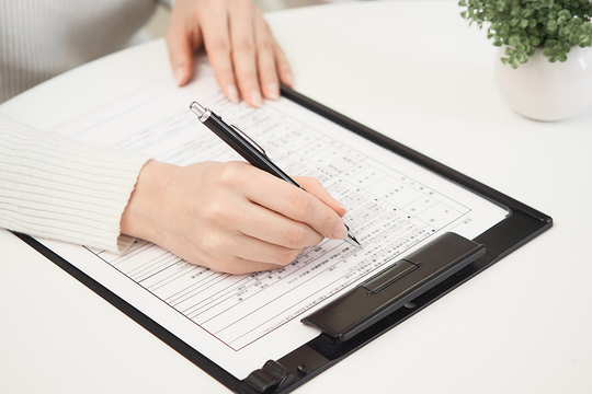 来院されましたら、受付で保険証の提示、診察券の提示(再診の場合のみ)、問診票へのご記入をお願いします。